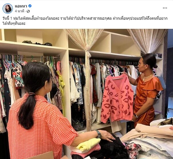 “เตรียมส่งต่อเสื้อผ้าแตงโม ร า ย ได้ส่วนหนึ่งมอบให้การ กุ ศ ล มีใครสนใจบ้างคะ”